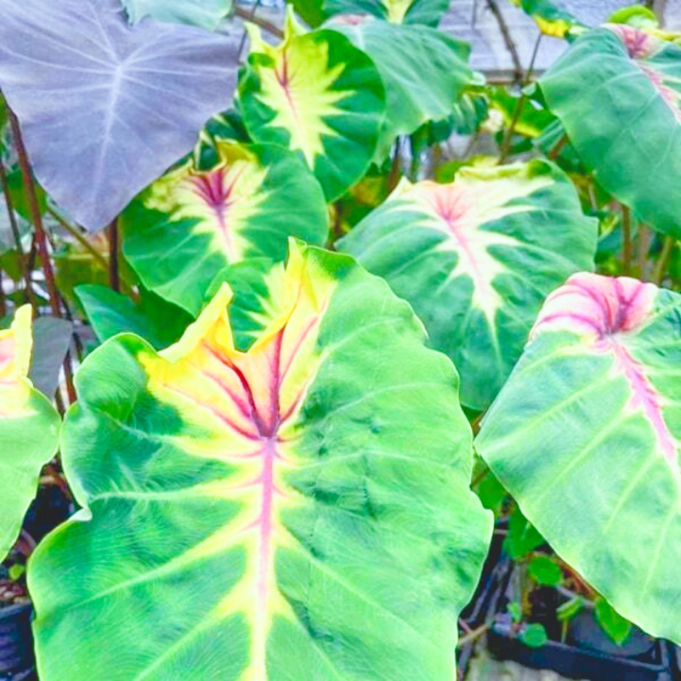 У Колоказии вариегатного вида, вы можете наблюдать совершенно не вероятные цвета.